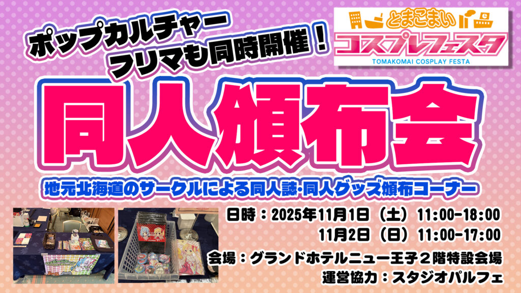 スタジオパルフェ主催の同人グッズ、ポップカルチャーフリマ、アニメくじなど楽しい物販コーナーが今年も開催します。