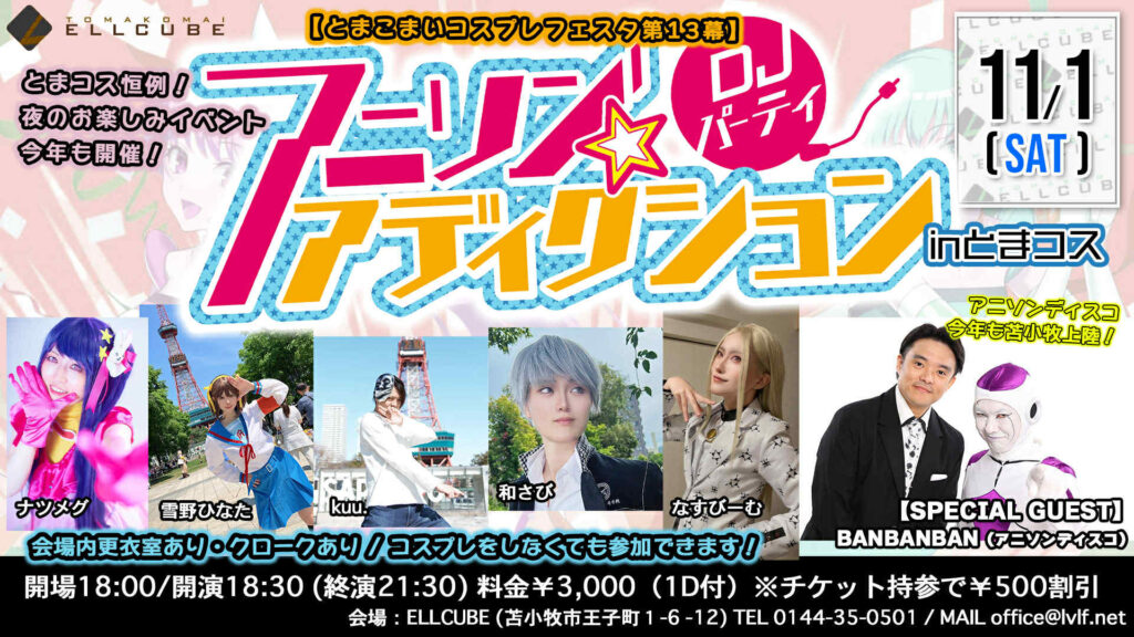 - ・とまコスチケット持参(リストバンド提示)で500円引きとなります