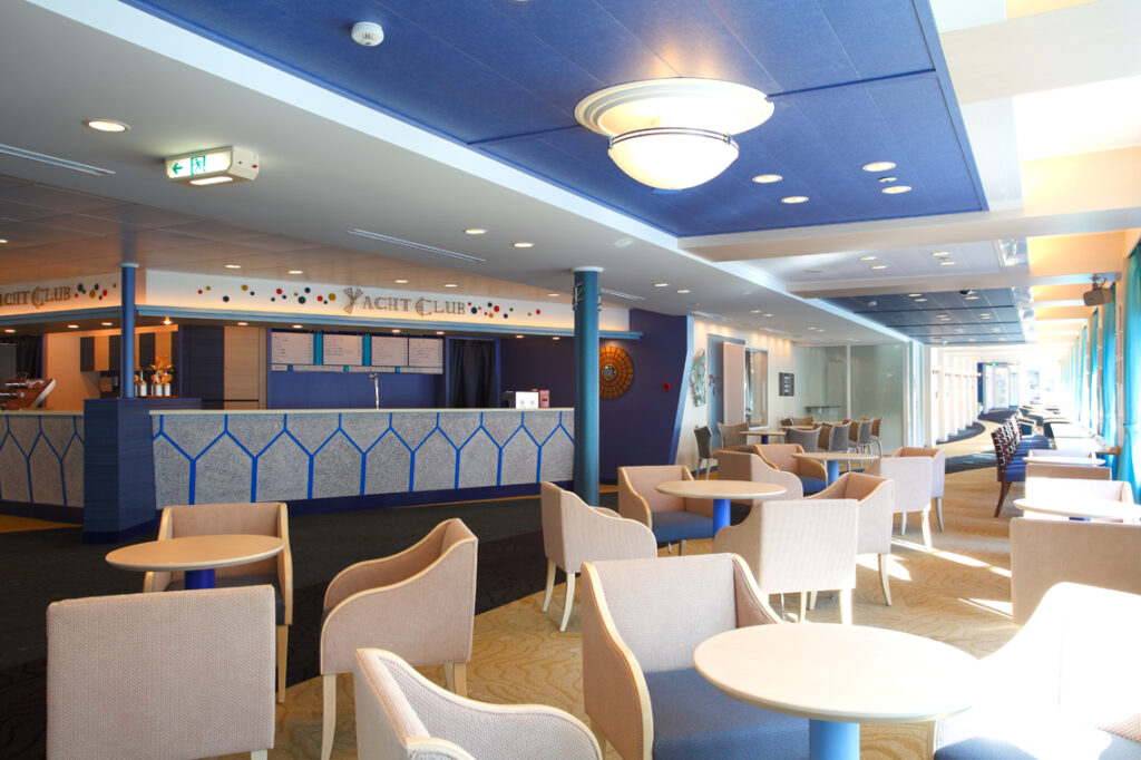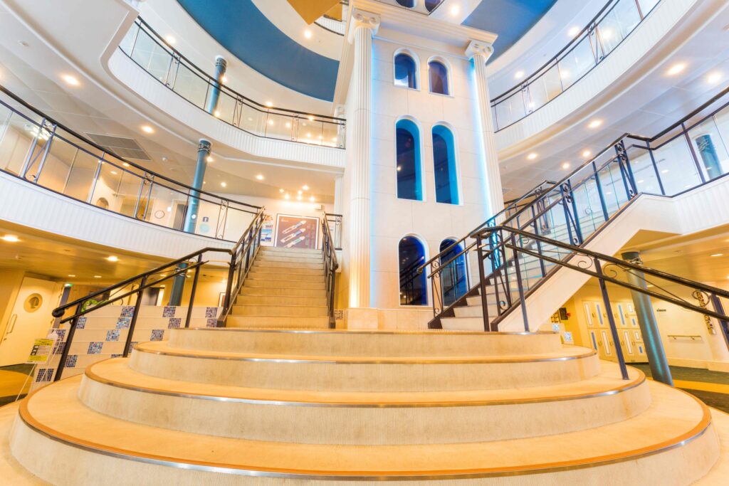 きらめく青い空と海・白壁の家々をイメージとした船内は明るく開放感がございます。
